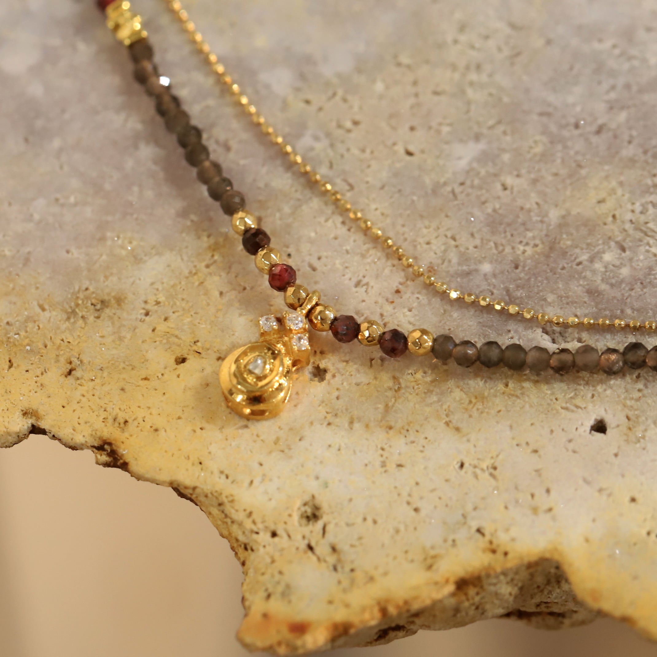 - Bohemian & radiant: Layered with other fine necklaces, natural stones, or organic textures, it creates a warm, natural and luminous look.